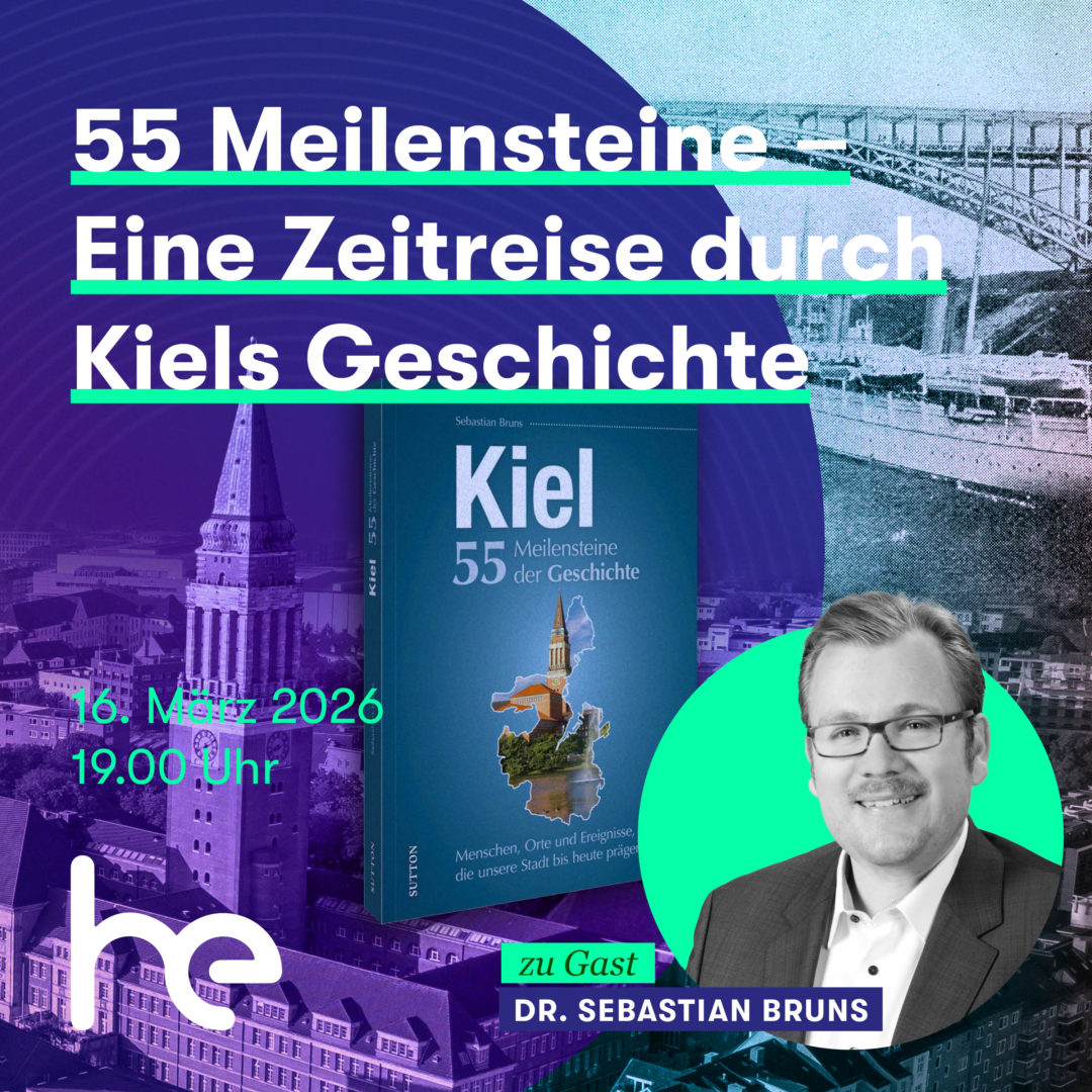 Eine faszinierende Reise durch die Geschichte Kiels – in dieser Abendveranstaltung stellt Autor Sebastian Bruns ausgewählte Höhe- und Wendepunkte aus seinem reich bebilderten Buch „Kiel. 55 Meilensteine der Geschichte“ vor und eröffnet neue Perspektiven auf die Entwicklung der schleswig-holsteinischen Landeshauptstadt.